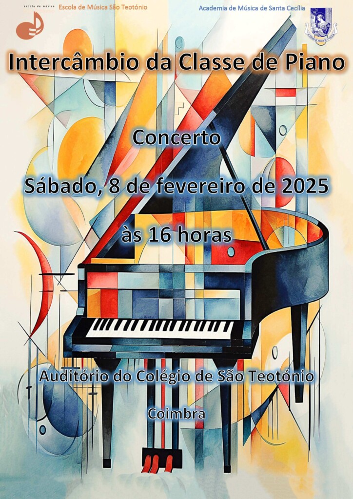 No dia 8 de fevereiro irá decorrer, pelas 16 horas, no Auditório do Colégio de São Teotónio, em Coimbra, o concerto de piano englobado no intercâmbio da classe de piano entre a Academia de Música de Santa Cecília e a Escola de Música de São Teotónio.
